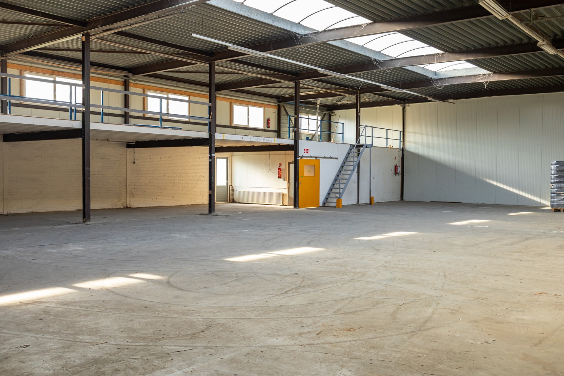 Bedrijfshal - 30 x 20 m met lichtstraat en royale overheaddeur ( 5 x 4,5 m ). zolderopslagruimte 30 x 5 m met royaal lichtinval-vlak/raampartijen, kantine met toiletgroep, drie aparte hardhouten toegangsdeuren.