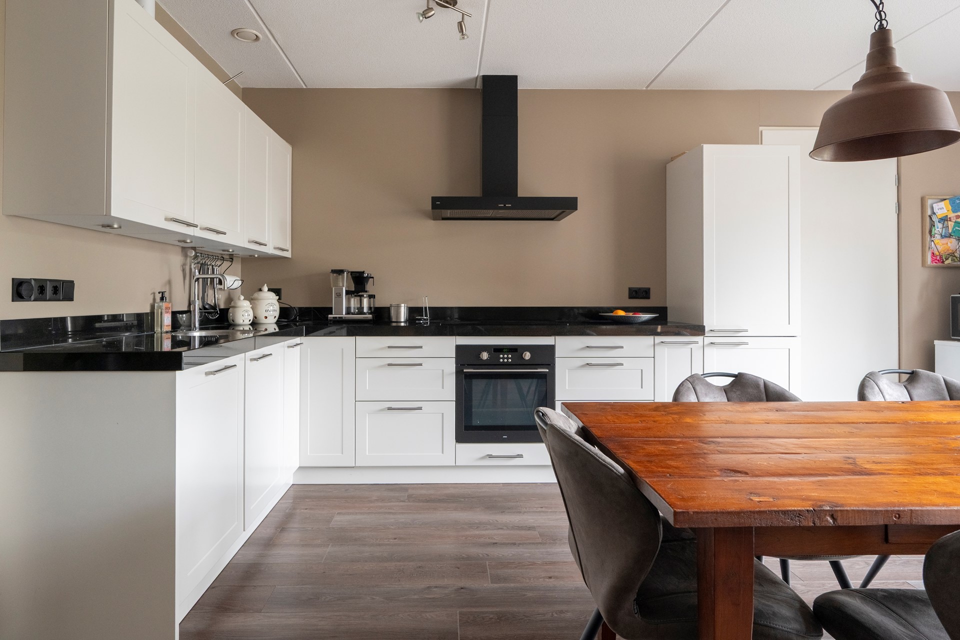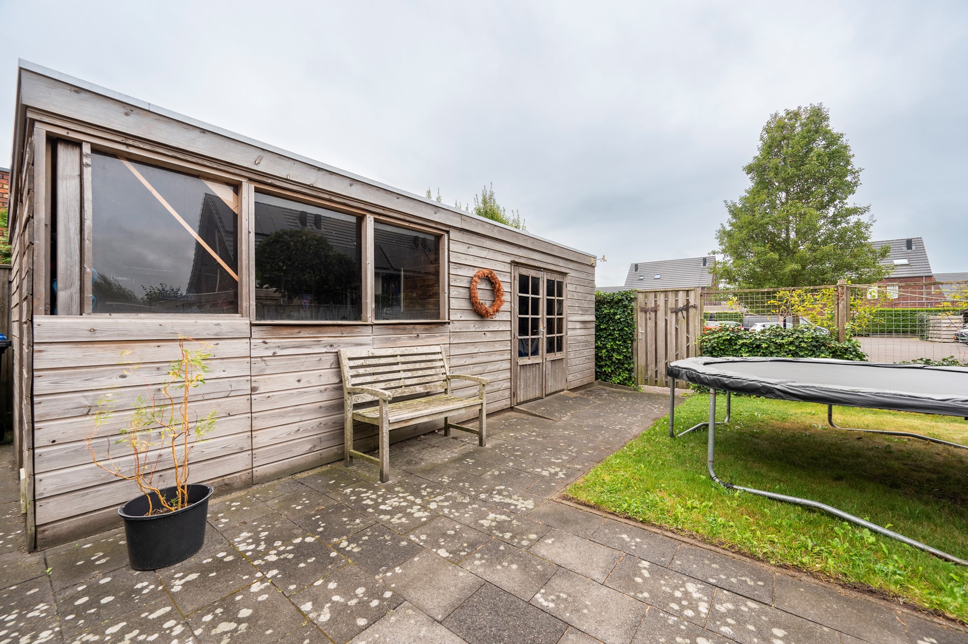 entree, hal, garderobe, modern toilet, trapopgang, ruime ( 60 m² ) kamer met achteraanbouw, berg-/provisiekast en openslaande tuindeuren, moderne open keuken en keukenblok met alle gewenste inbouwapparatuur o.a. quooker, koelkast, vaatwasser, oven, inductie kookplaat, afzuigkap en vriezer, bijkeuken met schuifkastenwand met wasmachine-aansluiting, garage/berging met openslaande deuren, heerlijke tuin op het zuiden met zonneterras en veel privacy ( geen directe achterburen ), houten bergschuur gecombineerd met tsjill-room met heater, oprit voor meerdere auto's en vrij achterom.