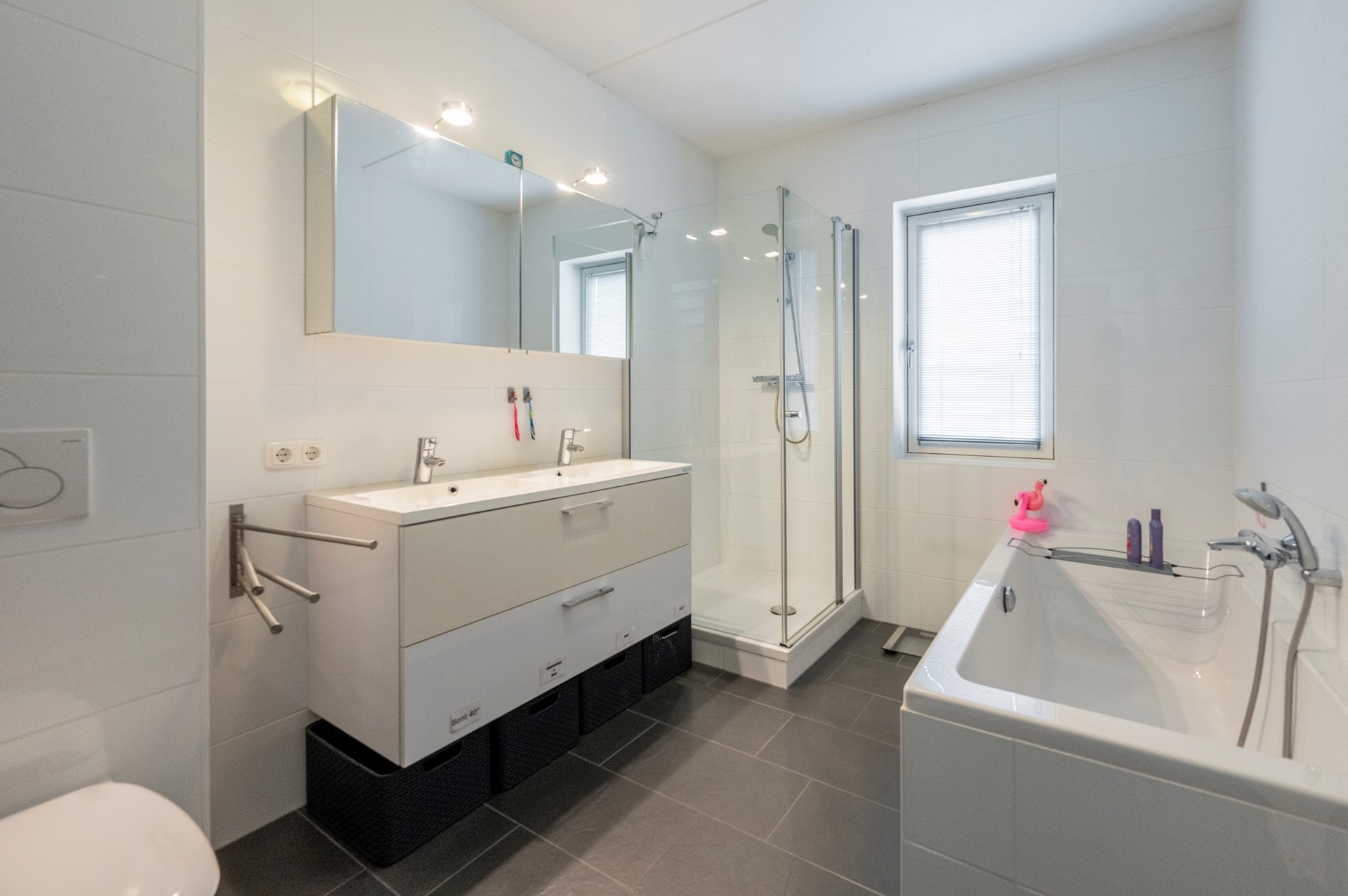 overloop, 3 ruime kantige slaapkamers, complete badkamer voorzien van ligbad, douchehoek, wastafelmeubel met dubbele wastafel en 2e hangend toilet.