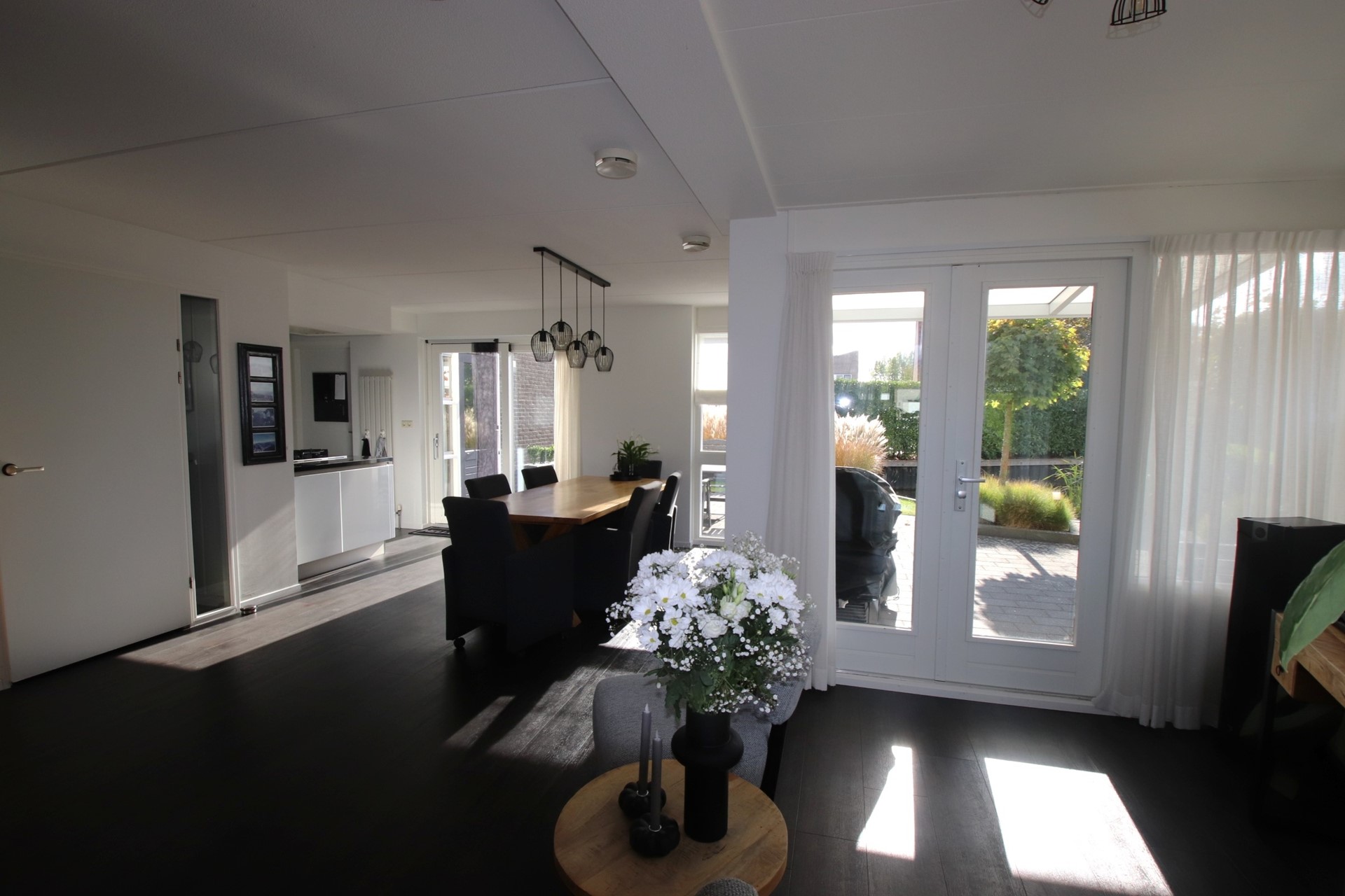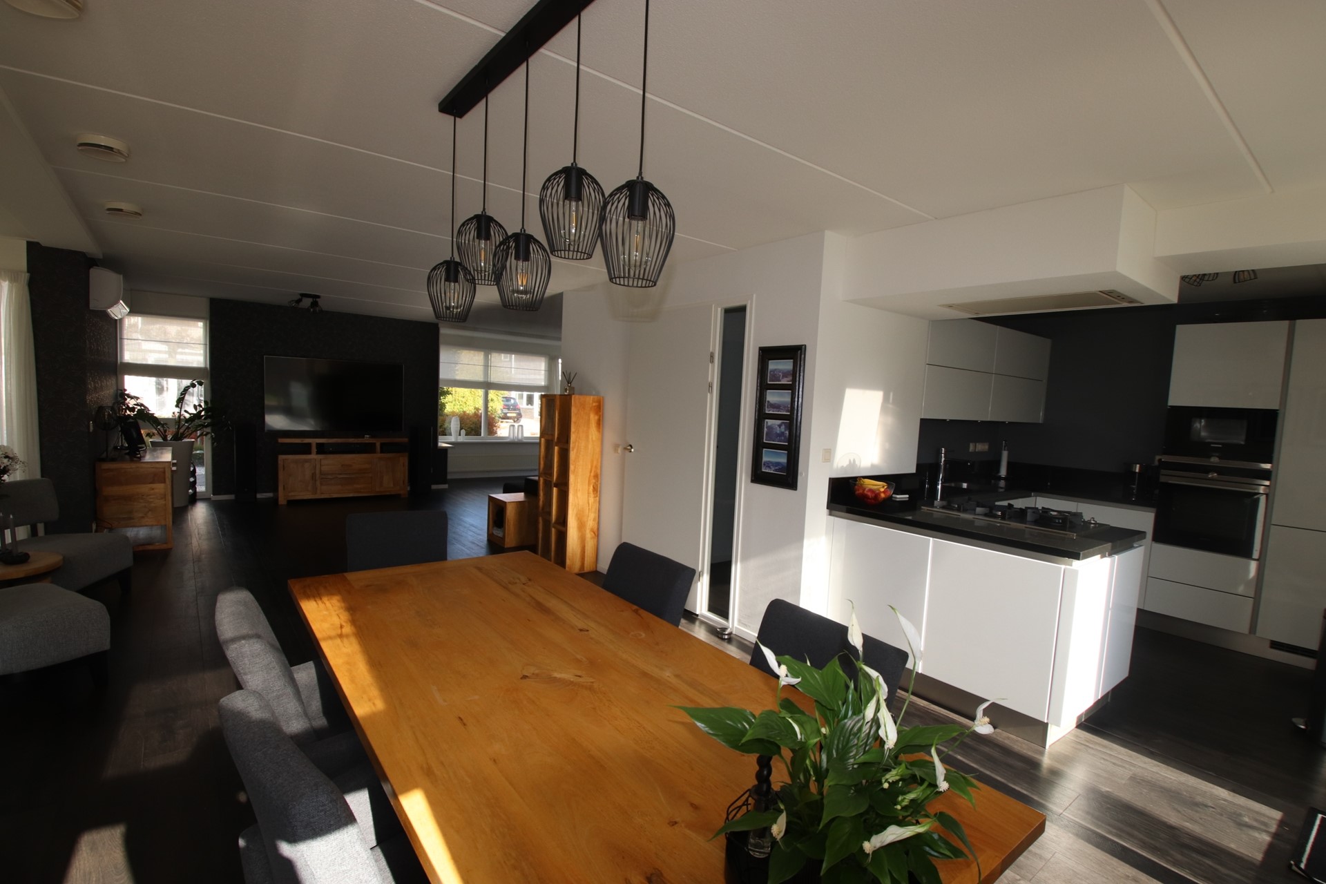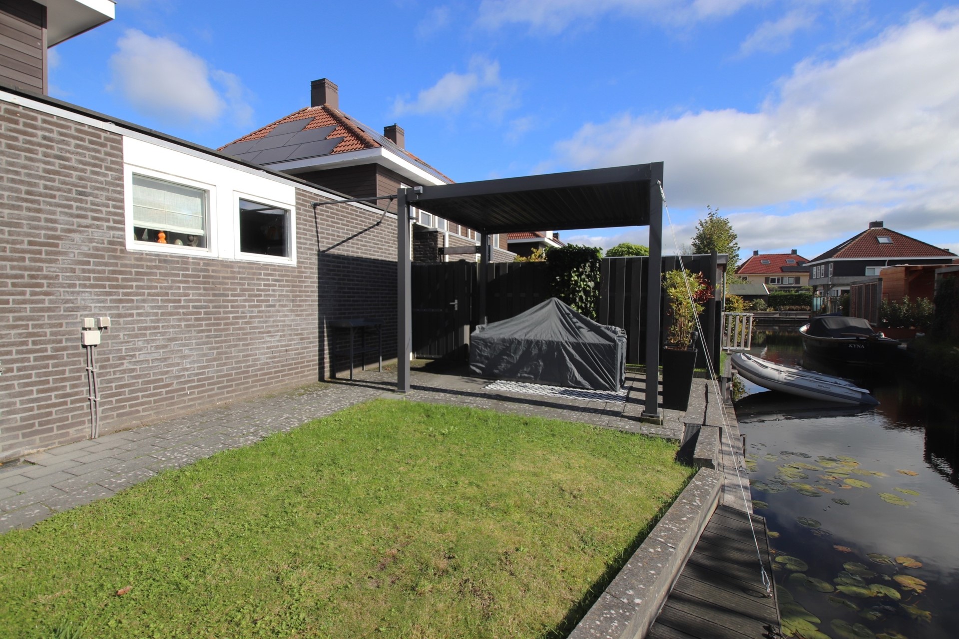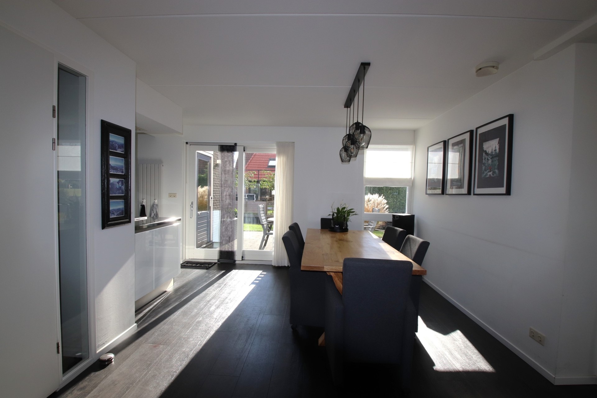 entree, hal, hardhouten trapopgang, modern toilet met fonteintje, royale (70 m²) vormige woonkamer met schuifpui, serre met openslaande tuindeuren naar overkapping, open recente keuken met alle gewenste inbouwapparatuur o.a. koelkast, vriezer, 5-pits gaskookplaat met wokbrander, magnetron, oven, vaatwasser en afzuigkap - allen Siemens, uitpandige bijkeuken met verlengstuk voor keuken met extra keukenkastjes ( voor extra huishoudelijke opslag ), extra werkblad, raampartij voor extra lichtinval en tuindeur, garage voorzien van elektrisch bedienbare garagedeur, betonvloer en raampartij voor lichtinval, vrij achterom, tuin op het zuiden met zonneterras met overkapping aan het water, aanlegsteiger/plaats en botenhellling, vernieuwde onderhoudsvriendelijke voor -en zijtuin, oprit voor 3 auto's met autolader.