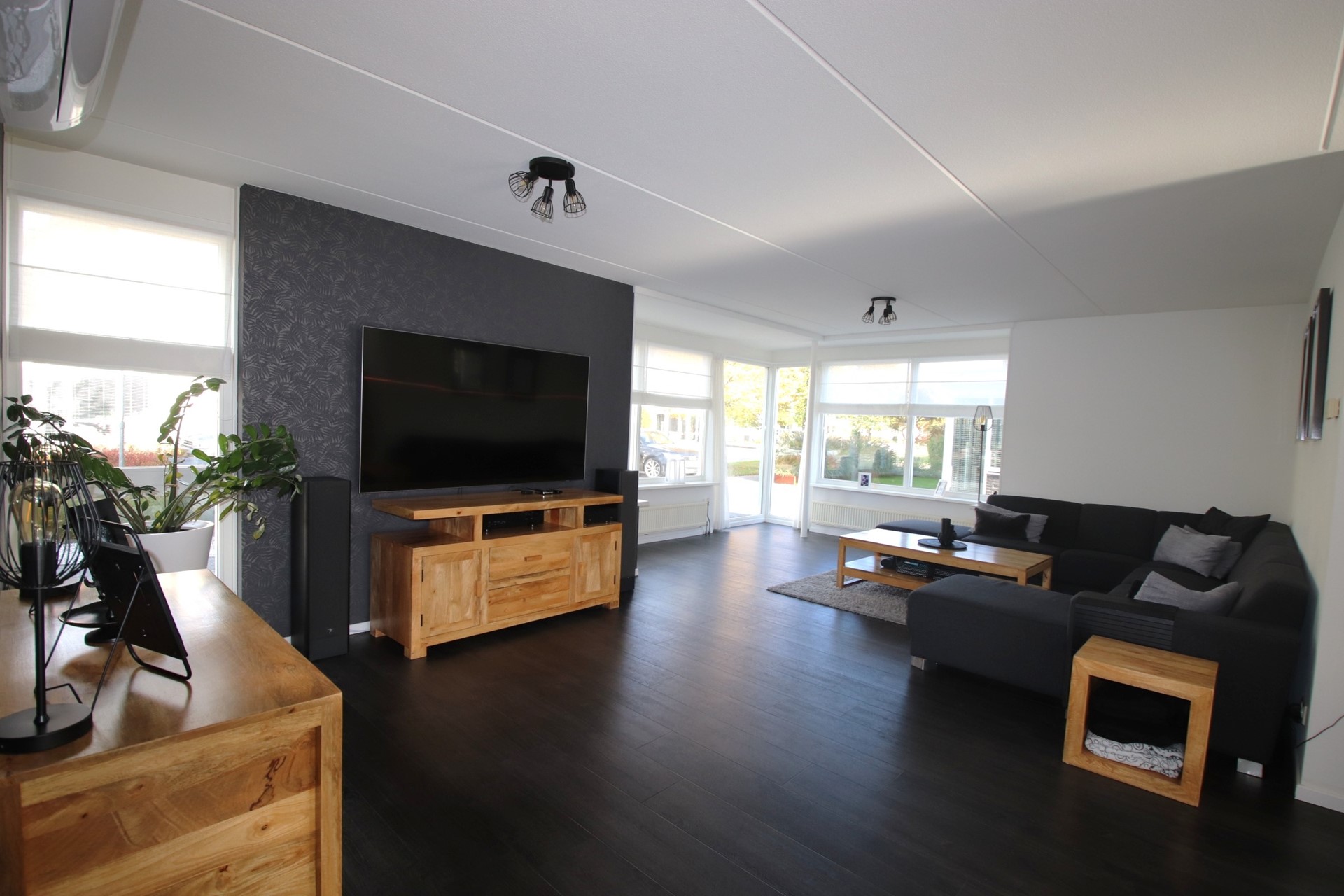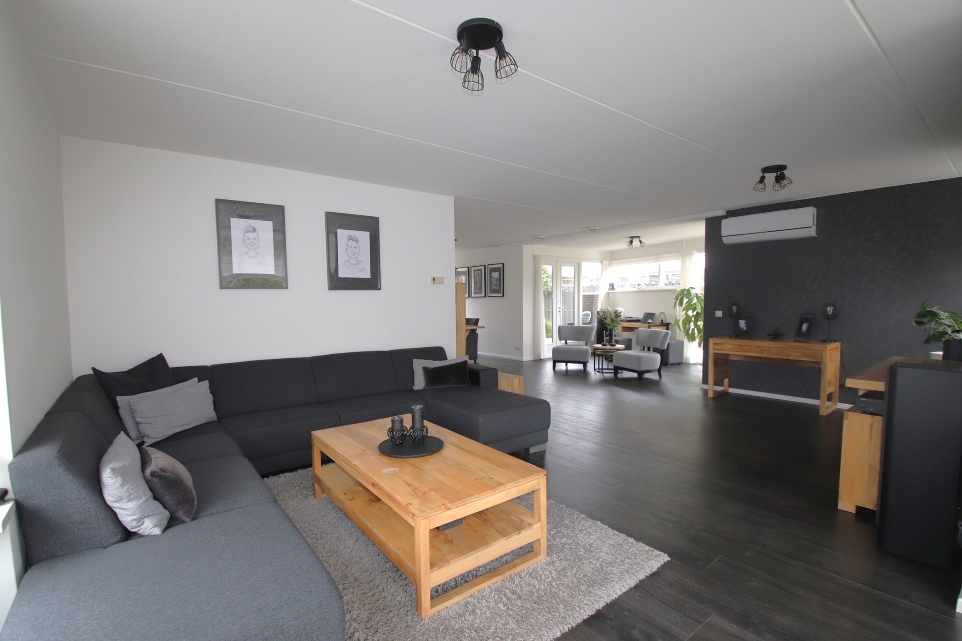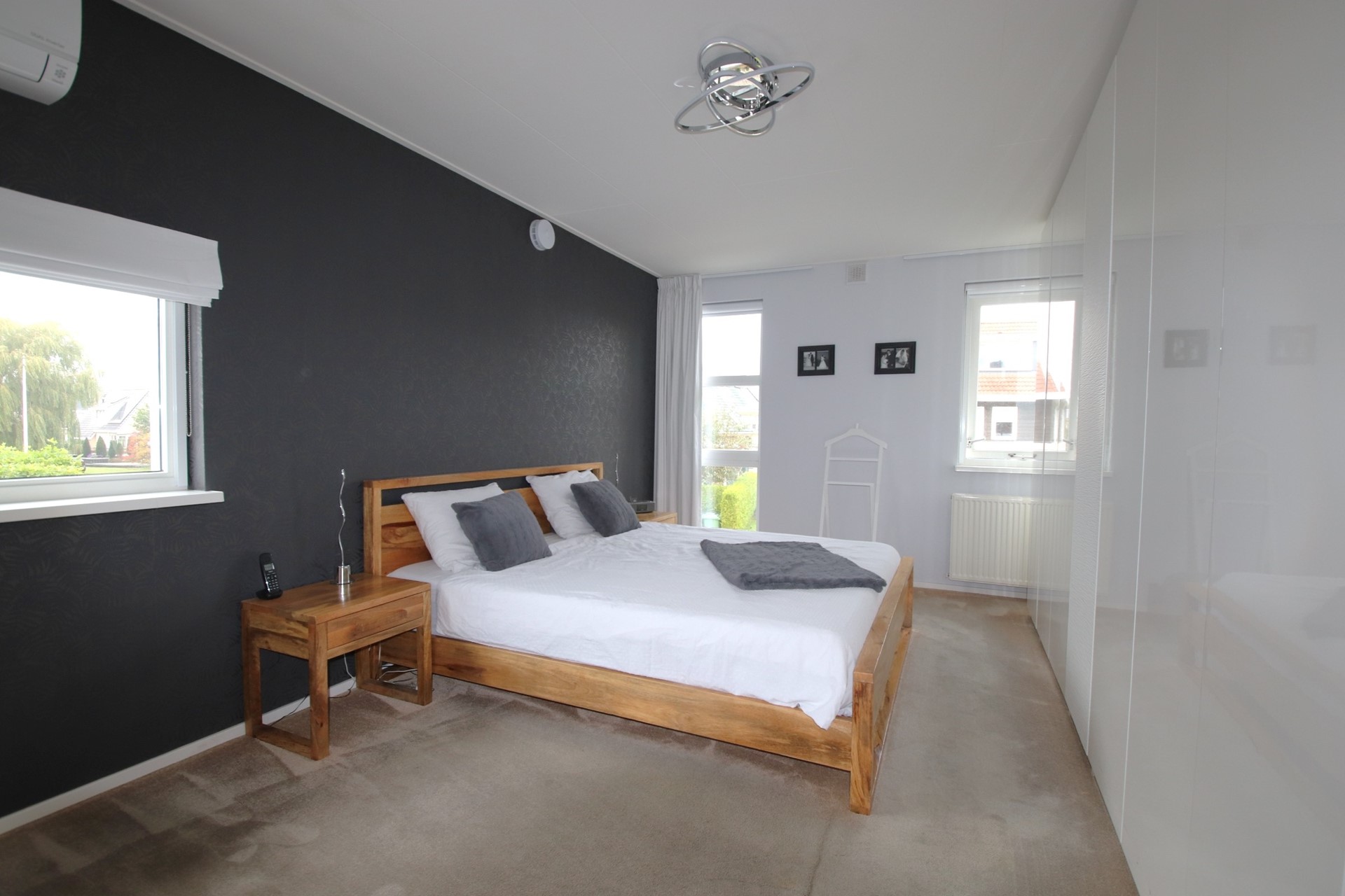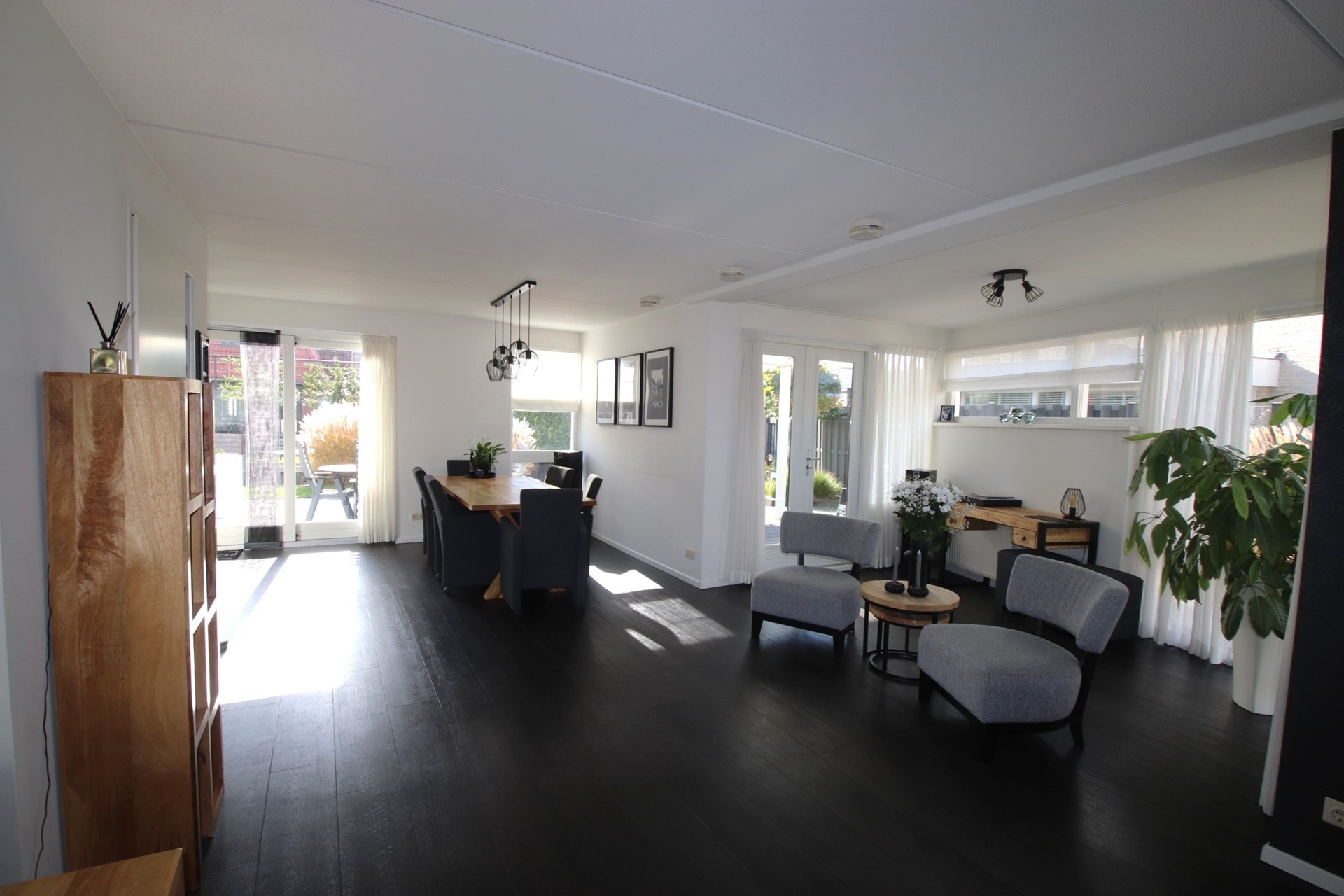entree, hal, hardhouten trapopgang, modern toilet met fonteintje, royale (70 m²) vormige woonkamer met schuifpui, serre met openslaande tuindeuren naar overkapping, open recente keuken met alle gewenste inbouwapparatuur o.a. koelkast, vriezer, 5-pits gaskookplaat met wokbrander, magnetron, oven, vaatwasser en afzuigkap - allen Siemens, uitpandige bijkeuken met verlengstuk voor keuken met extra keukenkastjes ( voor extra huishoudelijke opslag ), extra werkblad, raampartij voor extra lichtinval en tuindeur, garage voorzien van elektrisch bedienbare garagedeur, betonvloer en raampartij voor lichtinval, vrij achterom, tuin op het zuiden met zonneterras met overkapping aan het water, aanlegsteiger/plaats en botenhellling, vernieuwde onderhoudsvriendelijke voor -en zijtuin, oprit voor 3 auto's met autolader.