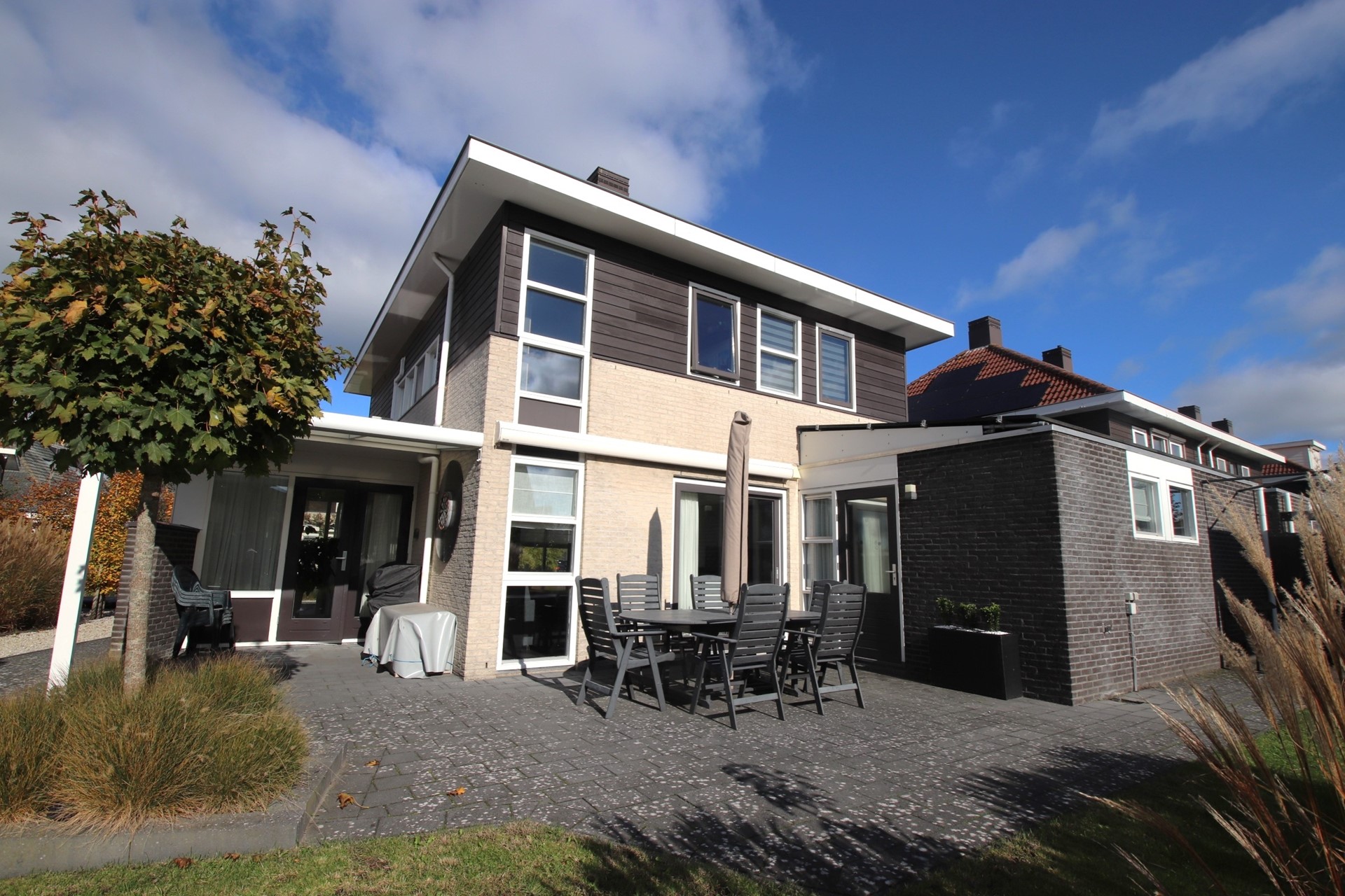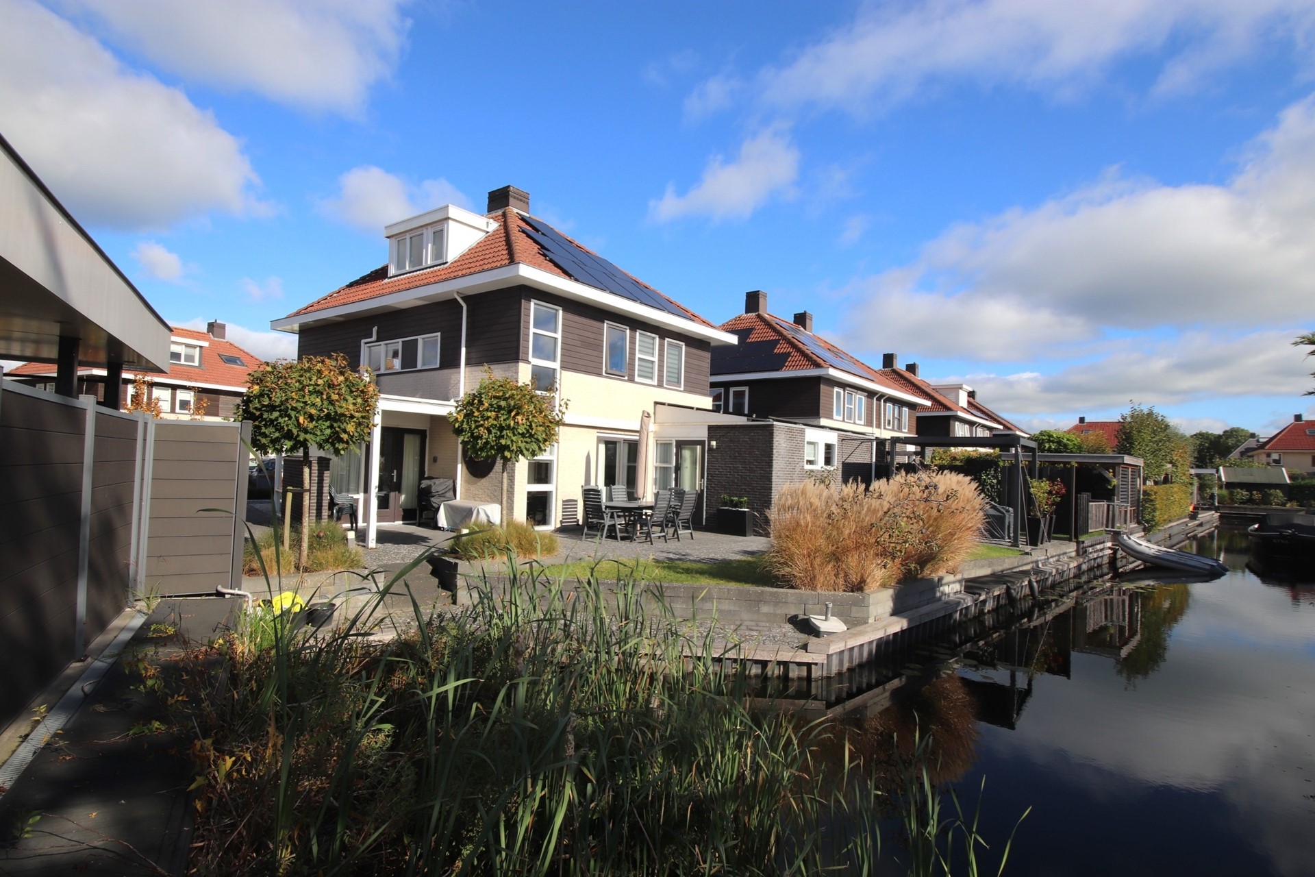 Op mooie en centrale woonlocatie aan vaarwater met aanlegplaats en boothelling voor sloep of andere boot. Dit moderne en comfortabele vrijstaande woonhuis met vrij achterom, uitpandige bijkeuken en garage, en heerlijke achtertuin op het zuiden met zonneterras en overkapping in de woonwijk "Fugelkrite 2". Eigen grond 389 m².