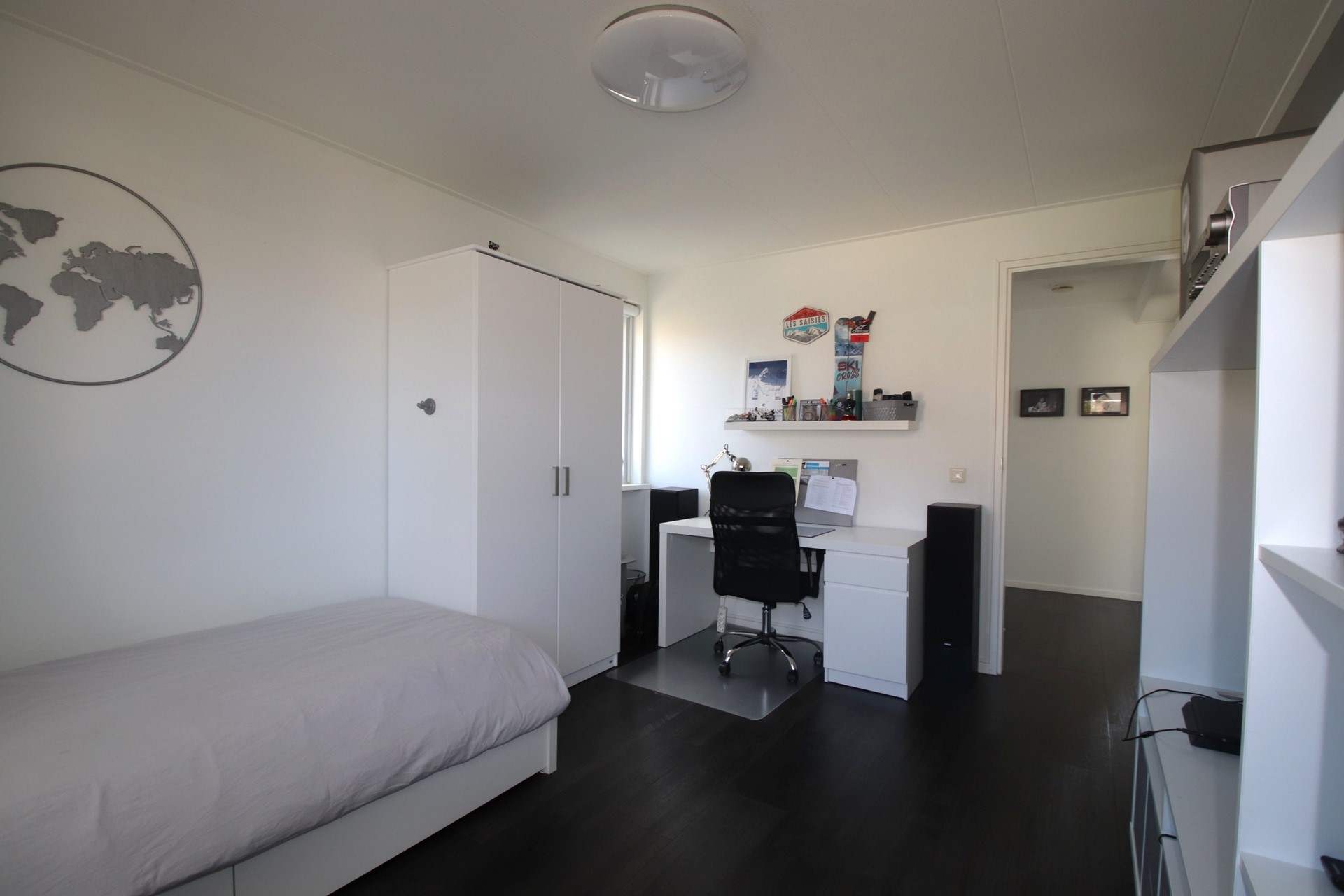 via vaste trap naar aparte 4e slaapkamer ( thans gastenkamer ) met kunststof dakkapel en bergkasten in knieschotten, bergkamer cq. mogelijke 2e ( gasten ) badkamer met dakkapel, aparte cv-/bergkast.