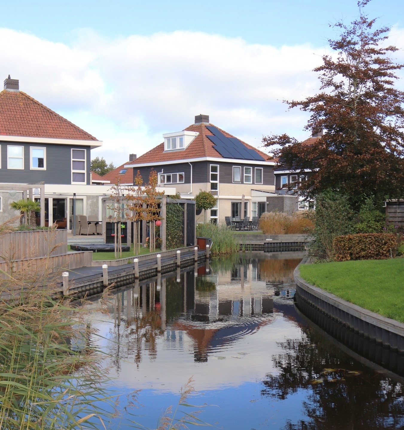 - mooi uitzicht beide kanten de straat in, maar ook over het water richting de centrale "groene" speelterp;